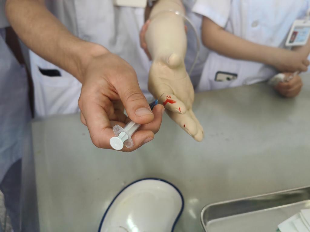 本次演練分為銳器傷應(yīng)急處理演練、應(yīng)急逃生演練(消防、地震)兩個(gè)部分進(jìn)行。第一部分,銳器傷應(yīng)急處理演練。集中講授易引起銳器傷發(fā)生的危險(xiǎn)行為,發(fā)生銳器傷不要驚慌,聽從指揮,完成應(yīng)急處理流程,各位置工作人員維持現(xiàn)場(chǎng)秩序,確保實(shí)訓(xùn)室無發(fā)生其他安全事件。