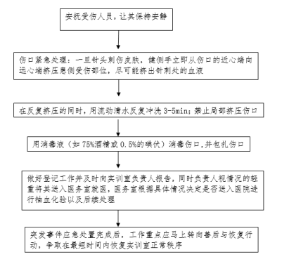 本次演練分為針刺傷應(yīng)急處理演練和應(yīng)急逃生演練(消防、地震)兩個(gè)部分。針刺傷應(yīng)急處理演練由實(shí)驗(yàn)員老師劉軼現(xiàn)場講授易引起針刺傷發(fā)生的危險(xiǎn)行為及發(fā)生針刺傷后的應(yīng)急處理流程,并現(xiàn)場進(jìn)行模擬處置。