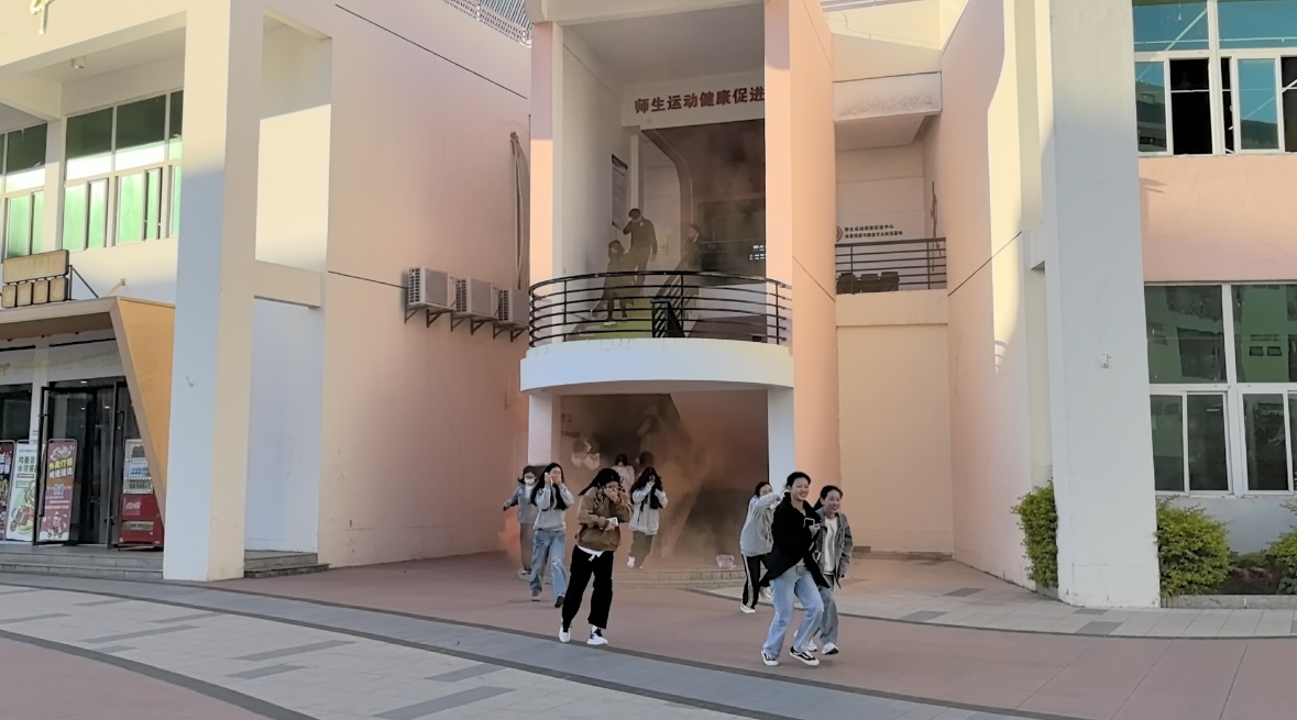 應(yīng)急逃生演練(消防、地震)前,由安全工作處黃興宇副處長講授介紹滅火器使用注意事項(xiàng)和應(yīng)急逃生演練疏散路線,提醒廣大師生聽從指揮、有序撤離,防止出現(xiàn)推搡、踩踏事故;各位置工作人員提前到崗,認(rèn)真履責(zé),確保撤離安全有序。演練開始,演練工作組接到演練指令后,模擬燃放煙霧,工作人員迅速組織學(xué)生依次從二樓師生運(yùn)動健康促進(jìn)中心撤出,按照指定路線,分別有序從樓梯通道內(nèi)側(cè)撤離,做到彎腰、捂口鼻、迅速有序,到仁心食堂門口的空地集合并清點(diǎn)人數(shù)。