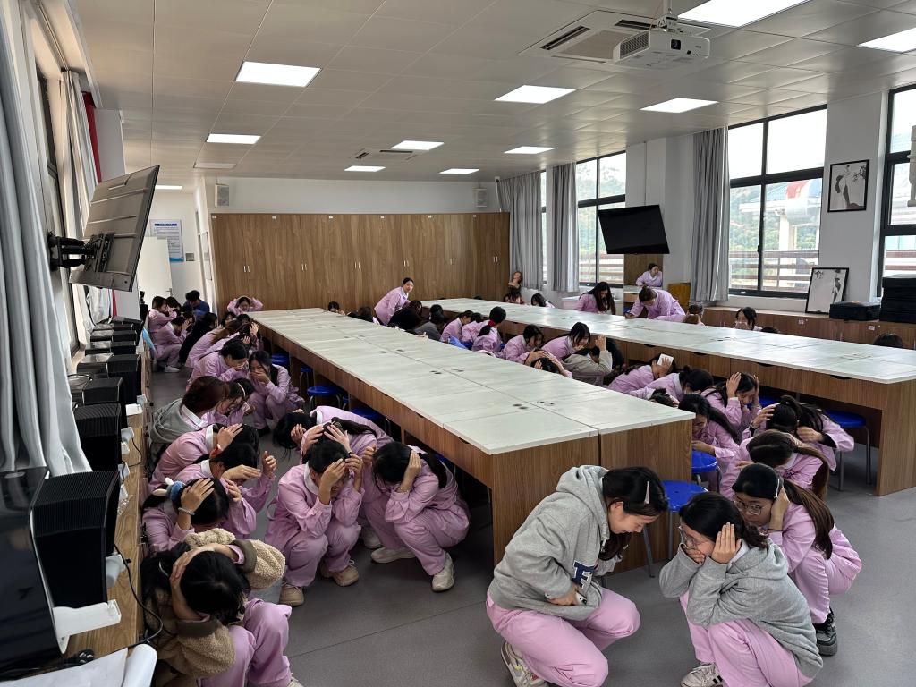 本次演練分為暈針應(yīng)急處理演練和應(yīng)急逃生演練(消防、地震)兩個(gè)部分。暈針應(yīng)急處理演練由健康學(xué)院楊笑老師現(xiàn)場(chǎng)講授易。