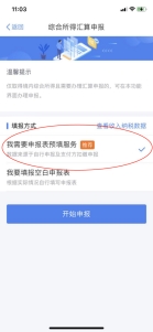 (三)選擇填報方式,建議選擇“我需要申報表預填服務”→“開始申報”,可快速進行申報。