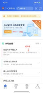 (一)打開并登陸“個人所得稅”APP,點擊“2021綜合所得年度匯算”或“常用業(yè)務”下的“綜合所得年度匯算”。