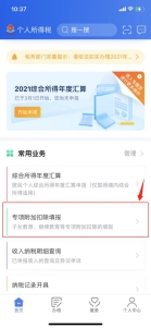 第一步:點擊首頁“專項附加扣除填報”。
