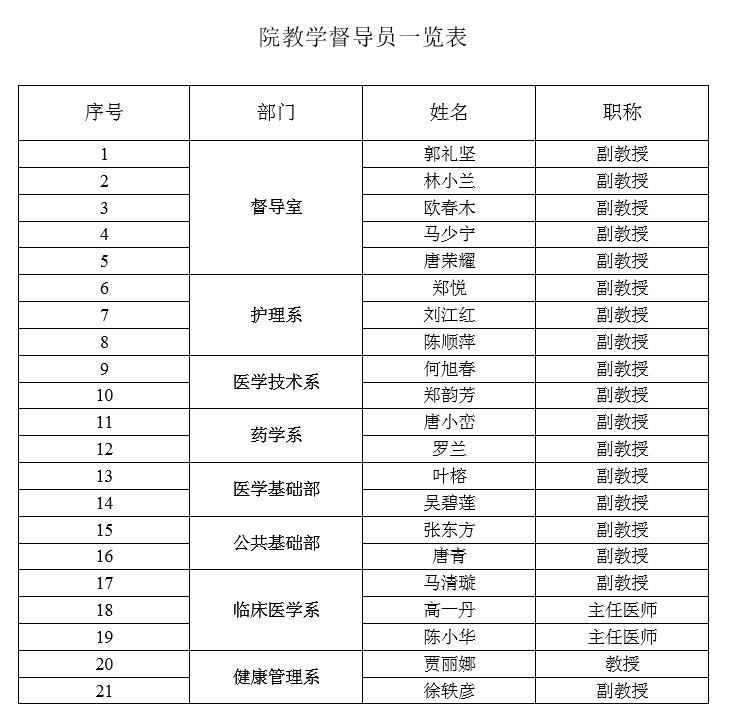 福建衛(wèi)生職業(yè)技術學院督導室是院長領導下的教學質量督查部門,主要協(xié)助學院領導從宏觀層面對學院的教學管理、教學過程、教學基本建設、教學質量方面進行調研分析、檢查評議、評估和指導,對督導工作中發(fā)現(xiàn)的問題及時反饋,協(xié)助職能部門調查,并及時向院領導、相關部門提出改進意見和建議,充分發(fā)揮教學的督查和指導作用。SPAN>