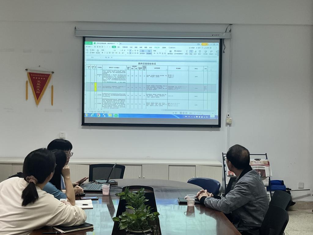 首先,質(zhì)量管理辦公室主任郭禮堅向馬院領(lǐng)導(dǎo)教師解釋診改工作教師、課程層面指標(biāo)標(biāo)準(zhǔn)內(nèi)涵、權(quán)重分和得分含義以及各層面指標(biāo)目標(biāo)達(dá)成度要求等。接著,就專職思政教師在教師層面的教材建設(shè)、專業(yè)實踐、社會培訓(xùn)以及課程層面的雙師型教師比例等指標(biāo),和馬院領(lǐng)導(dǎo)教師開展充分研討,積極協(xié)調(diào)兼顧專職思政教師的指標(biāo)標(biāo)準(zhǔn)。最終達(dá)成共識:在教材建設(shè)、雙師型教師比例等指標(biāo)上,對專職思政教師不作要求;在專業(yè)實踐、社會培訓(xùn)等指標(biāo)上,添加專職思政教師實踐研修、宣講等內(nèi)容,使得診改指標(biāo)標(biāo)準(zhǔn)內(nèi)容更加豐富,更加適應(yīng)我校實際工作。