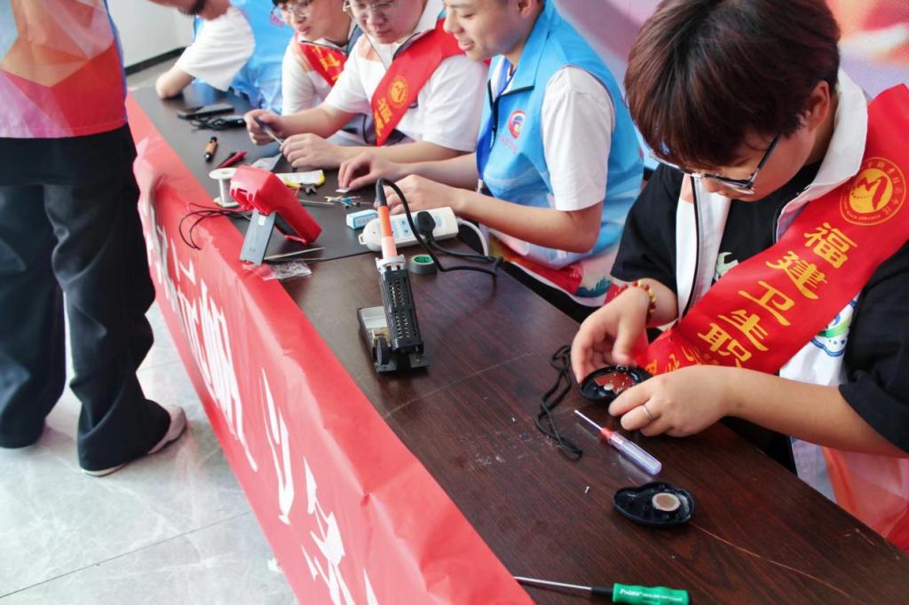 為弘揚(yáng)“勞動光榮、技能寶貴、創(chuàng)造偉大”的時代風(fēng)尚,積極響應(yīng)黨的二十大號召,充分展示我校辦學(xué)特色和成果、發(fā)揮我校醫(yī)學(xué)職業(yè)技能優(yōu)勢,體現(xiàn)高校教師黨員服務(wù)社會的作用,質(zhì)量管理辦公室黨支部聯(lián)合醫(yī)學(xué)技術(shù)與工程學(xué)院第二黨支部進(jìn)社區(qū)開展家電免費(fèi)維修等職教周活動。該活動于2024年5月16日在閩侯濱江社區(qū)舉行,活動內(nèi)容包括:醫(yī)療家用電子儀器免費(fèi)維修活動、無償獻(xiàn)血宣教、糖尿病篩查活動,乙肝表面抗原篩查活動、兒童青少年近視防控篩查活動、口腔護(hù)理咨詢、耳穴療法等。