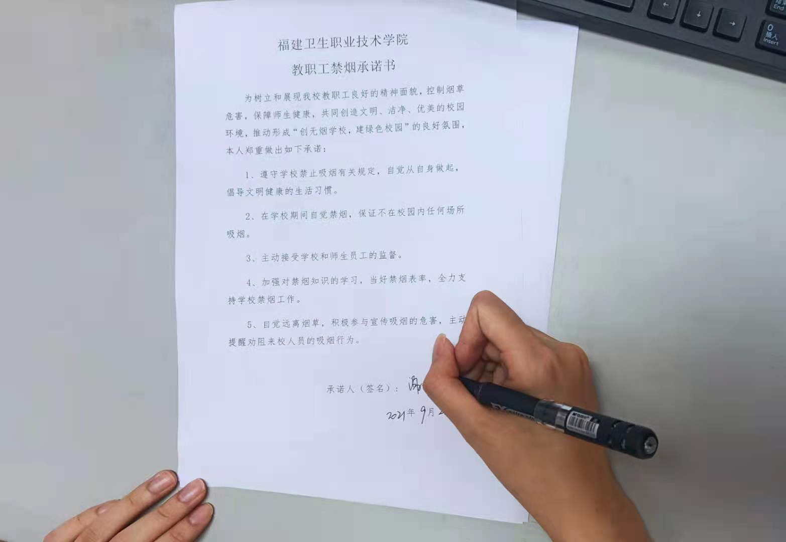 部門新進(jìn)工作人員簽訂《教職工禁煙承諾書》,鄭重作出禁煙承諾。