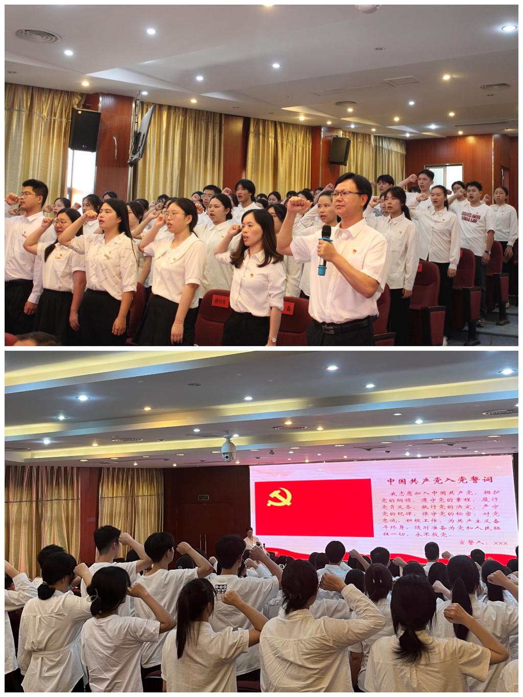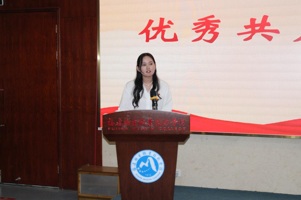 護(hù)理學(xué)院青年教師林曉瓊作為優(yōu)秀共產(chǎn)黨員代表發(fā)言,她結(jié)合自身經(jīng)歷,分享了她在護(hù)理教育和社會(huì)服務(wù)如何用專業(yè)知識(shí)和技能服務(wù)群眾、引領(lǐng)學(xué)生前行,并表示未來(lái)將不忘初心、堅(jiān)守誓言、牢記使命、奮勇向前,為學(xué)校發(fā)展和學(xué)生培養(yǎng)作出更大的貢獻(xiàn)。在公共衛(wèi)生與健康管理學(xué)院黨委書(shū)記葉海的帶領(lǐng)下,近五十名新黨員面對(duì)黨旗進(jìn)行了莊嚴(yán)的宣誓,表達(dá)了他們堅(jiān)定不移跟黨走、為共產(chǎn)主義事業(yè)奮斗終身的決心和信念。