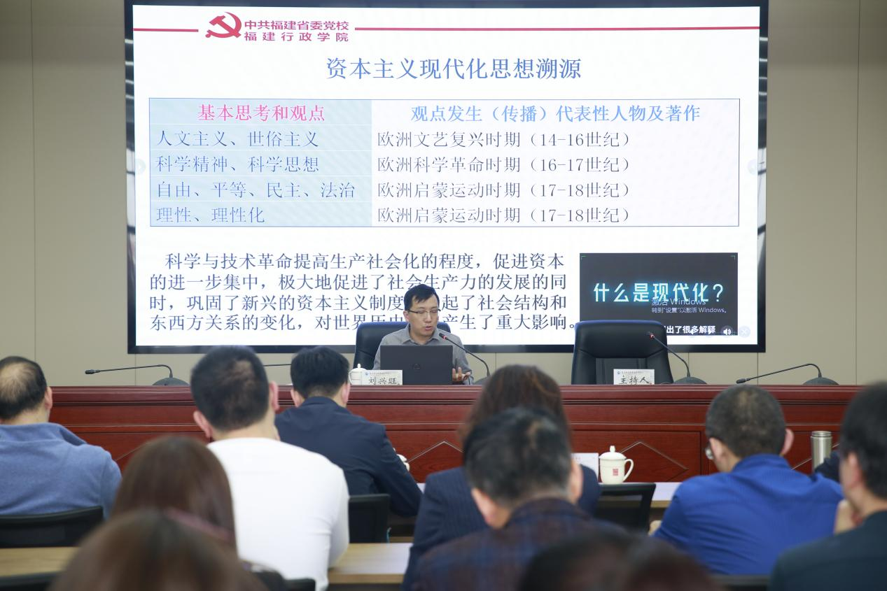 劉興旺副教授作“以中國式現(xiàn)代化全面推進(jìn)中華民族偉大復(fù)興”專題輔導(dǎo)報告,他從中國式現(xiàn)代化的歷史邏輯、理論體系和實踐要求三個方面,系統(tǒng)梳理了中國式現(xiàn)代化的理論內(nèi)涵和實踐路徑,強調(diào)指出,推進(jìn)中國式現(xiàn)代化,黨員領(lǐng)導(dǎo)干部要提高認(rèn)識,走前頭、做標(biāo)桿、擔(dān)重任。
