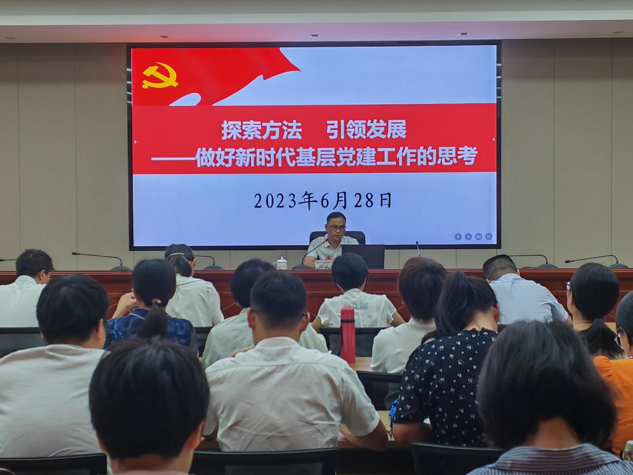 錢從明老師以《探索方法 引領(lǐng)發(fā)展——做好新時代基層黨建工作的思考》為題,從發(fā)展黨員工作中常見問題與困惑、如何總結(jié)凝練基層黨建工作經(jīng)驗和做好新時代黨建工作的實踐思考三個方面對黨建工作進行了全面的梳理和指導。他結(jié)合發(fā)展黨員專項檢查中遇到的問題、黨建項目申報優(yōu)秀案例等為例,對黨建工作實務(wù)進行了詳細的講解,并從“勤學習、重思考、善作為、求創(chuàng)新”四個角度對黨務(wù)干部做好新時代基層黨建工作提供了建議。最后,與會黨務(wù)干部針對黨建雙創(chuàng)、支部立項、發(fā)展黨員等工作中遇到的實際問題與錢老師開展了現(xiàn)場交流。