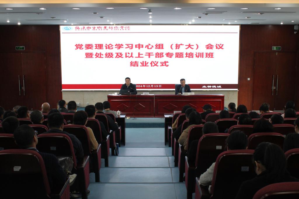 講座結(jié)束后,舉辦了學(xué)校處級(jí)及以上干部黨的二十屆三中全會(huì)專題培訓(xùn)班結(jié)業(yè)儀式,曾武祈強(qiáng)調(diào)要以此次輔導(dǎo)為契機(jī),運(yùn)用好專題培訓(xùn)的成果,在全面學(xué)習(xí)把握、貫徹落實(shí)上持續(xù)下功夫,堅(jiān)定不移地把黨的二十屆三中全會(huì)精神落實(shí)到統(tǒng)一思想上、落實(shí)到具體行動(dòng)上。一要始終堅(jiān)持深學(xué)細(xì)悟、內(nèi)化于心,永葆對(duì)黨的絕對(duì)忠誠(chéng)。帶著感情、帶著使命、帶著信仰,把學(xué)習(xí)黨的二十屆三中全會(huì)精神、全國(guó)教育大會(huì)精神,與學(xué)習(xí)習(xí)近平總書記來閩的重要講話精神緊密結(jié)合起來,一體聯(lián)動(dòng)學(xué)、深入思考學(xué)、聯(lián)系實(shí)際學(xué)。二要始終堅(jiān)持全員學(xué)習(xí)、全域覆蓋,切實(shí)凝聚強(qiáng)大精神力量。學(xué)習(xí)宣傳貫徹黨的二十屆三中全會(huì)精神,是一個(gè)常學(xué)常新、不斷深化的過程。我們要持續(xù)加大力度、拓展深度、延伸廣度,不斷增強(qiáng)學(xué)習(xí)宣傳的理論深度、實(shí)踐力度、情感溫度。三要始終堅(jiān)持篤信篤行、實(shí)干苦干,強(qiáng)化擔(dān)當(dāng)作為推動(dòng)發(fā)展。學(xué)習(xí)宣傳貫徹黨的二十屆三中全會(huì)精神,最關(guān)鍵的是不折不扣抓貫徹、全力以赴抓落實(shí)。各二級(jí)黨組織、各職能部門要把學(xué)習(xí)貫徹黨的二十屆三中全會(huì)精神與謀劃推動(dòng)學(xué)校高質(zhì)量發(fā)展、抓好當(dāng)前工作緊密結(jié)合起來,按照2024年年終工作和2025年開局工作的要求,找準(zhǔn)工作的切入點(diǎn)、結(jié)合點(diǎn)、著力點(diǎn)抓好貫徹落實(shí)。