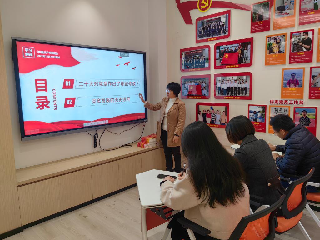 為深入學(xué)習(xí)宣傳貫徹黨的二十大精神,切實(shí)把黨員的思想統(tǒng)一到黨的二十大精神上來,12月1日,組織統(tǒng)戰(zhàn)部黨支部書記謝濤以專題黨課的形式,帶領(lǐng)支部黨員共同學(xué)習(xí)《中國共產(chǎn)黨章程(修正案)》。