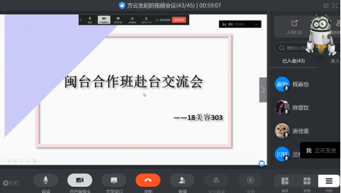 健康管理系于2020年5月15日20:00舉辦線上閩臺合作班赴臺交流會。參加此次交流會的領(lǐng)導(dǎo)有健康管理黨總支黃曦書記、健康管理系莊海林主任、醫(yī)學(xué)美容技術(shù)專業(yè)教師,輔導(dǎo)員和醫(yī)學(xué)美容技術(shù)專業(yè)2018級,2019級閩臺合作班同學(xué)也參加交流會。