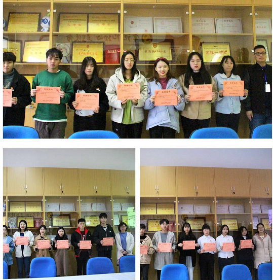 管理系黨總支艾松軍書(shū)記,管理系第二黨支部書(shū)記,團(tuán)總支書(shū)記馮瑞華老師,管理系團(tuán)總支副書(shū)記趙茜老師,分別為獲獎(jiǎng)?wù)哳C獎(jiǎng)并合影留念。
