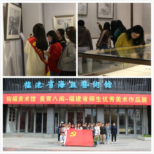 為進(jìn)一步貫徹落實(shí)習(xí)近平新時代中國特色社會主義思想,喜迎2019全國兩會勝利召開,引領(lǐng)廣大師生深入感受美育改革的“溫度”、“力度”和“獲得感”。3月31日,管理系教工黨支部開展“藝海泛舟,同心筑夢”主題黨日活動,組織17、18級入黨積極分子赴福建省海絲藝術(shù)館參觀福建省師生優(yōu)秀美術(shù)作品展。