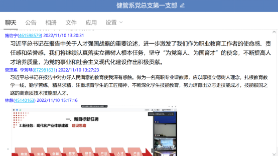2022年11月10日,由中國職業(yè)技術(shù)教育學(xué)會組織的“學(xué)習(xí)宣傳貫徹黨的二十大精神座談會”在線上召開,各支部黨員收看了座談會。
