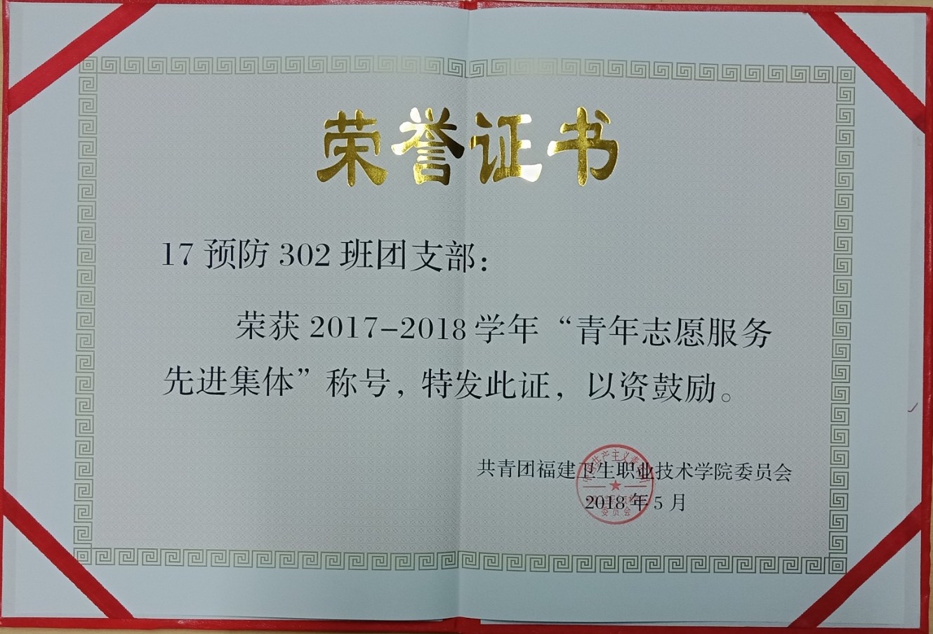 17預防302班團支部獲評“青年志愿服務先進集體”