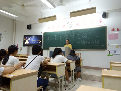 管理系團(tuán)總支組織委員陳鉆強同學(xué)到16美容301班進(jìn)行宣講。