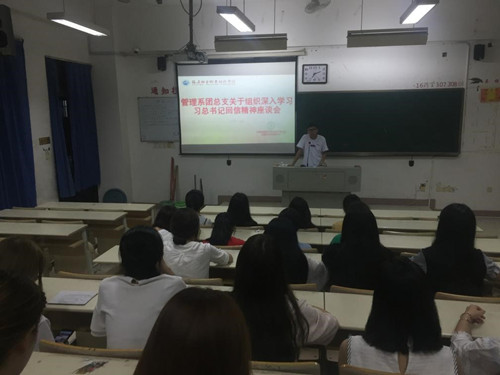 為迎接和學(xué)習(xí)宣傳貫徹黨的十九大精神,充分的學(xué)習(xí)到深刻領(lǐng)會習(xí)近平總書記回信的精神實質(zhì)和豐富內(nèi)涵,堅定理想信念,錘煉意志品質(zhì)。2017年9月12日,管理系團(tuán)總支書記邱麟老師組織總支委員會議,組織學(xué)習(xí)了習(xí)近平總書記給第三屆中國“互聯(lián)網(wǎng)+”大學(xué)生創(chuàng)新創(chuàng)業(yè)大賽“青年紅色筑夢之旅”的大學(xué)生的回信,通知安排管理系團(tuán)總支四位學(xué)生委員走進(jìn)2016級四個班級進(jìn)行深入學(xué)習(xí)宣傳貫徹習(xí)近平總書記的回信精神。