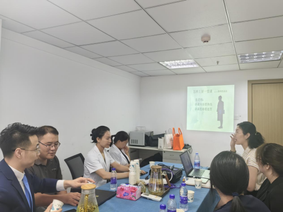 會后,醫(yī)學(xué)美容技術(shù)專業(yè)教師吳若云給愛美爾醫(yī)學(xué)美容教研室的老師們做《怎樣上好一門課》的講座,李宏教授也給老師們分享了如何備課等細節(jié),現(xiàn)場交流氛圍熱烈,校企雙方老師交流互動良好。