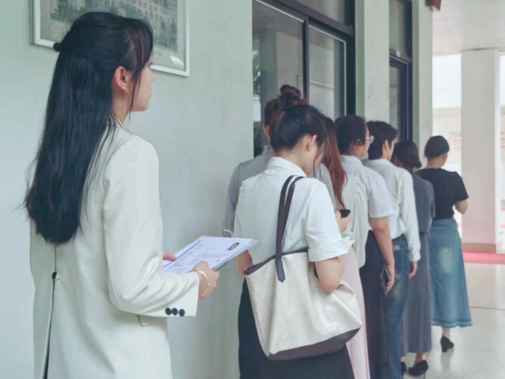 在教學樓舉辦醫(yī)學美容技術(shù)專業(yè)雙選會,活動吸引了眾多馬上要面臨實習的2022級醫(yī)學美容技術(shù)專業(yè)的同學參加。本次活動邀請了廈門美萊、愛美爾、東方美、福州華窈、臺江醫(yī)院等各大單位的HR們來校為學生進行職業(yè)規(guī)劃指導和面試活動?;顒赢斕?,HR們受邀為即將要下實習點的2022級醫(yī)學美容技術(shù)專業(yè)學生宣講企業(yè)文化、崗位內(nèi)容、工作環(huán)境、發(fā)展前景等,企業(yè)HR們根據(jù)自身經(jīng)驗對學生進行職業(yè)規(guī)劃指導,并提供崗位和現(xiàn)場面試活動,學生根據(jù)自己的專業(yè)特點和興趣選擇自己喜歡的就業(yè)單位,企業(yè)對學生進行了現(xiàn)場面試,進行了雙向選擇。雙選會現(xiàn)場,同學們朝氣蓬勃信心滿滿,積極地展現(xiàn)著自己的優(yōu)勢與實力。