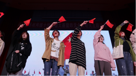 一場(chǎng)古色古香的開(kāi)場(chǎng)舞蹈后,19健管302班精心準(zhǔn)備的《回望祖國(guó)》節(jié)目精彩上演,同學(xué)們以小品的形式表達(dá)了自己身為中國(guó)人的驕傲與自豪。