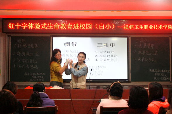 為提升中小學(xué)教師應(yīng)急救護(hù)知識(shí)的普及率,助力健康學(xué)校建設(shè),為學(xué)校師生生命安全和健康保駕護(hù)航,12月26日下午,管理系黨總支第二黨支部帶領(lǐng)系團(tuán)總支學(xué)生會(huì)、院紅十字學(xué)生分會(huì)赴白沙中心小學(xué)開(kāi)展紅十字體驗(yàn)式生命教育進(jìn)校園主題黨日活動(dòng)。