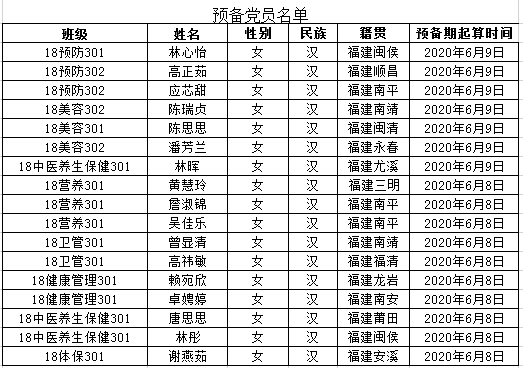 經(jīng)黨支部表決、黨總支審批、中共福建衛(wèi)生職業(yè)技術(shù)學院委員會批準,同意教師黨員莊海林同志按期轉(zhuǎn)正;同意接收林心怡等17位同志為中共預備黨員,預備期一年,預備期從支部大會通過之日算起。