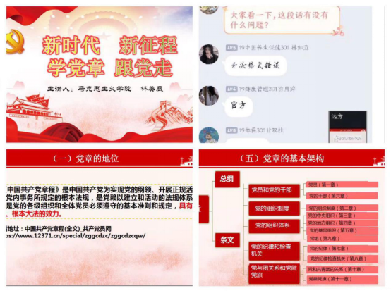1月15日晚,健康管理系第七期業(yè)余分黨校第三課由馬克思主義學(xué)院林美辰老師在線上開展以“新時(shí)代,新征程,學(xué)黨走,跟黨走”為主題的專題黨課。此次黨課主要為學(xué)員進(jìn)行黨章的介紹,黨章規(guī)定了中國共產(chǎn)黨的信念宗旨、組織保障、行為規(guī)則和紀(jì)律約束,每一條都凝結(jié)著黨的建設(shè)的歷史經(jīng)驗(yàn),是共產(chǎn)黨人的“原教旨”。此次黨課分為兩部分,一是學(xué)黨章,二是爭取入黨,旨在加強(qiáng)學(xué)員對黨章的學(xué)習(xí),每一位學(xué)員都要把黨章黨規(guī)黨紀(jì)刻印在心上,嚴(yán)格按黨章標(biāo)準(zhǔn)要求自己,知邊界、明底線,今后要不斷提高執(zhí)行黨章的自覺性,牢記使命,為民服務(wù)。