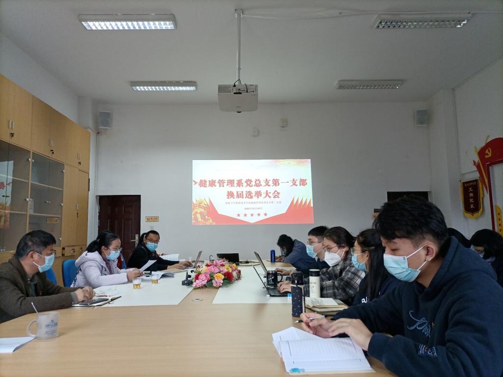 2022年12月15日下午,健康管理系黨總支第一支部在系會議室召開換屆選舉大會,會議由健康管理系黨總支第一支部副書記揭金花同志主持,健康管理系黨總支第一支部全體黨員參會。