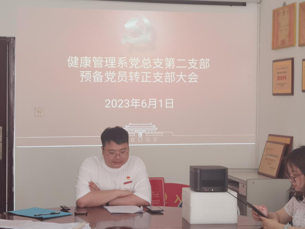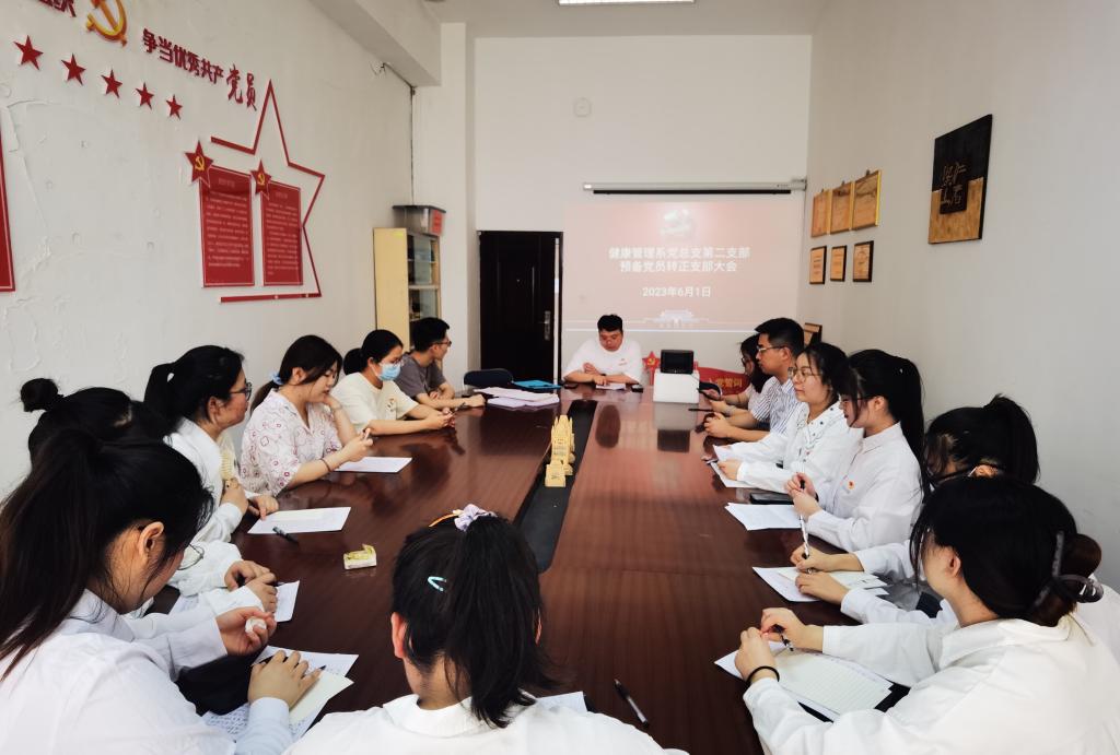 2023年6月1日,健康管理系黨總支第二黨支部在圖書(shū)館會(huì)議室舉行預(yù)備黨員轉(zhuǎn)正大會(huì)。