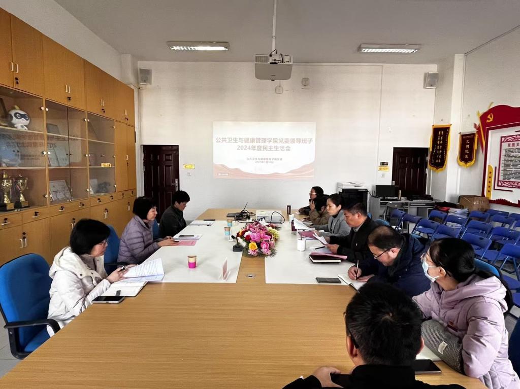 1月16日下午,公共衛(wèi)生與健康管理學院黨委領導班子2024年度民主生活會在學院會議室召開,校第三督導組到會指導,學院黨委領導班子全體成員參加會議,會議由學院黨委書記龔海蓉主持。