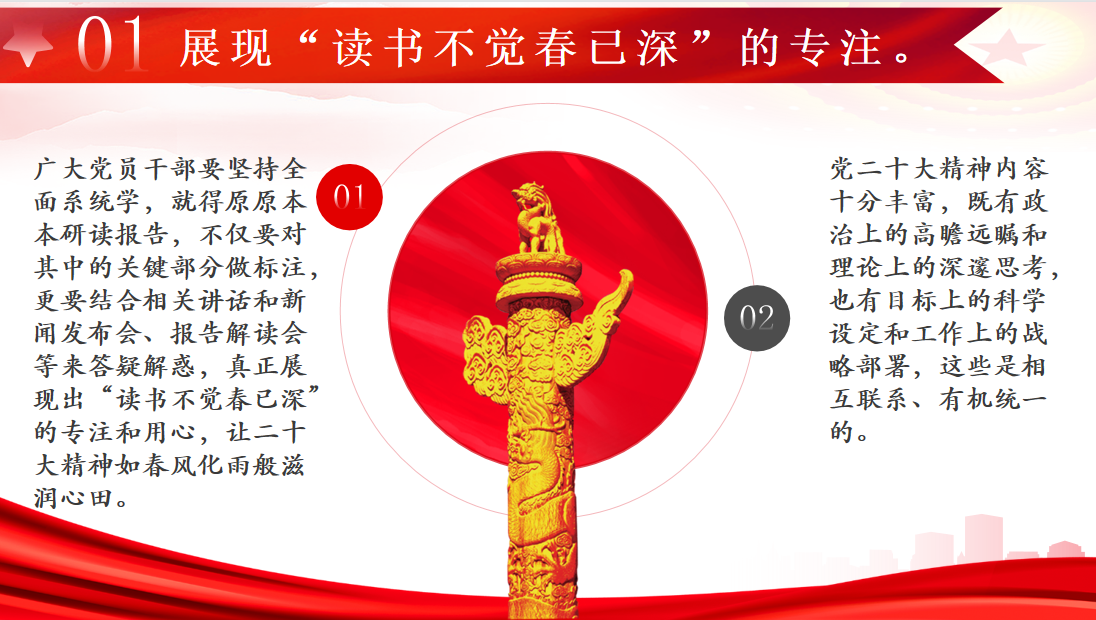 支部師生黨員們我們一定把學習好貫徹好落實好黨的二十大精神作為最重大的政治任務,增強“四個意識”、堅定“四個自信”、做到“兩個維護”,以昂揚的精神狀態(tài)、務實的工作作風全面貫徹落實黨的二十大精神,踔厲奮發(fā)、勇毅前行、團結奮斗!
