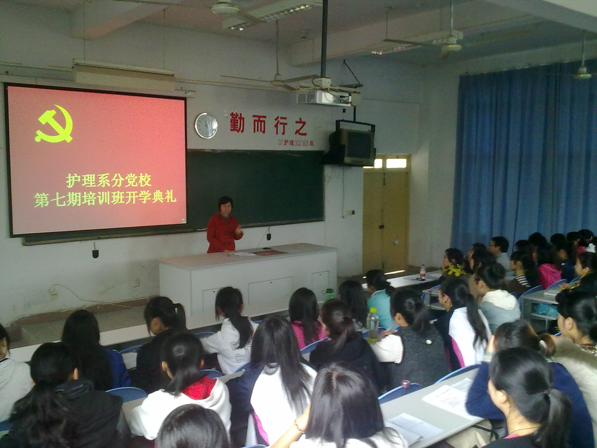 2011年5月4日下午,護(hù)理系分黨校第七期學(xué)習(xí)班開(kāi)班典禮在護(hù)理系第一階梯教室舉行。護(hù)理系黨總支按照院黨校的要求,做好入黨積極分子的培養(yǎng)與組織發(fā)展,高度重視此次培訓(xùn)班的組織工作。我系黨總支謝濤書(shū)記與各位輔導(dǎo)員出席了此次典禮。