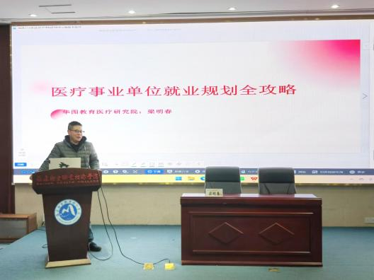 為深入貫徹黨的二十屆三中全會(huì)和全國(guó)教育大會(huì)精神,貫徹落實(shí)黨中央、國(guó)務(wù)院對(duì)高校畢業(yè)生就業(yè)創(chuàng)業(yè)工作的決策部署,幫助學(xué)生提升職業(yè)素養(yǎng)和就業(yè)競(jìng)爭(zhēng)力,護(hù)理學(xué)院學(xué)生第一黨支部于12月30日晚在實(shí)訓(xùn)樓報(bào)告廳開展就業(yè)指導(dǎo)黨日活動(dòng)。本次活動(dòng)特邀華圖教育醫(yī)療研究院梁明春老師作《醫(yī)療事業(yè)單位就業(yè)規(guī)劃全攻略》專題輔導(dǎo)。護(hù)理學(xué)院2025屆畢業(yè)生線上參加此次活動(dòng)。