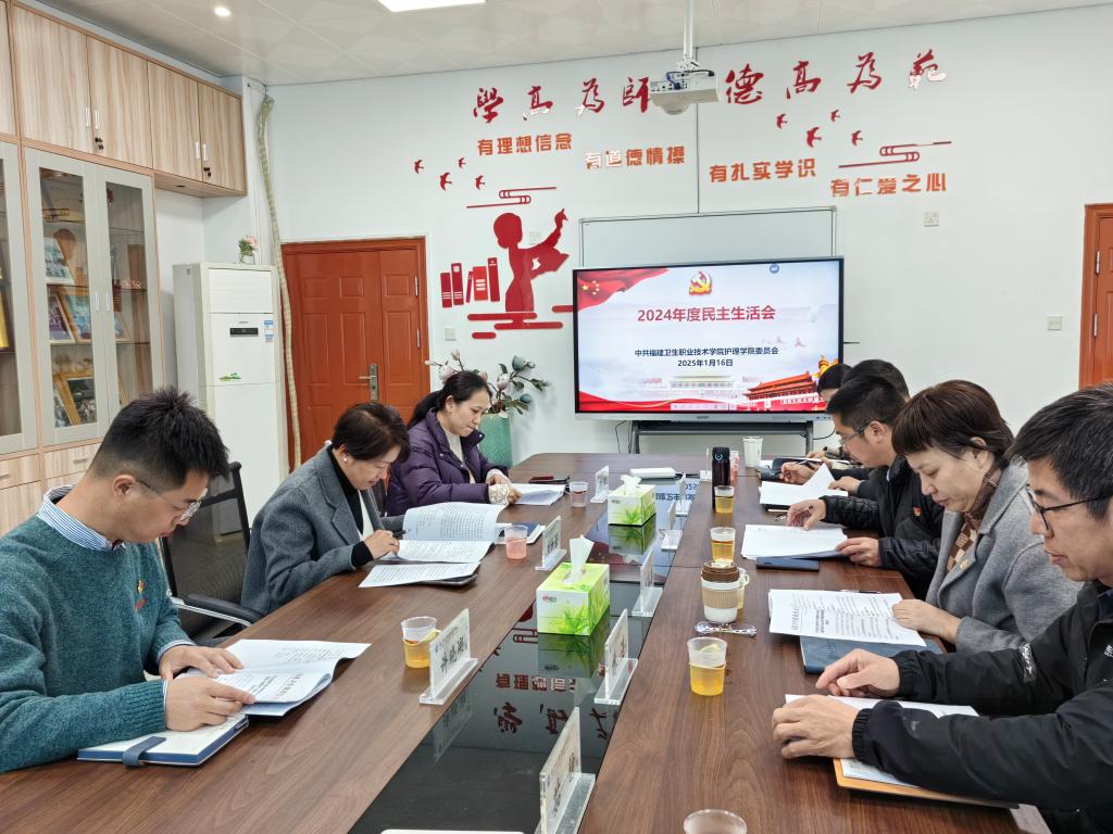 按照校黨委的統(tǒng)一部署,1月16日下午,學(xué)院領(lǐng)導(dǎo)班子在301會議室召開2024年度黨員領(lǐng)導(dǎo)干部民主生活會。朱扶蓉副校長出席會議并講話。護(hù)理學(xué)院領(lǐng)導(dǎo)班子成員參加會議,校第七督導(dǎo)組成員列席指導(dǎo)會議。