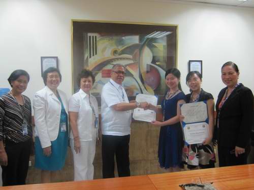 在學院加強中菲護理教育交流、推進我系護理教育國際化的背景下,王珊珊和吳美丹兩位老師赴菲律賓UERMMMCI (The University of The East Ramon Magsaysay Memorial Medical Center, INC) College Of Nursing為期兩個月的學習訪問。于2011年4月29日圓滿完成各項任務(wù)勝利返校。