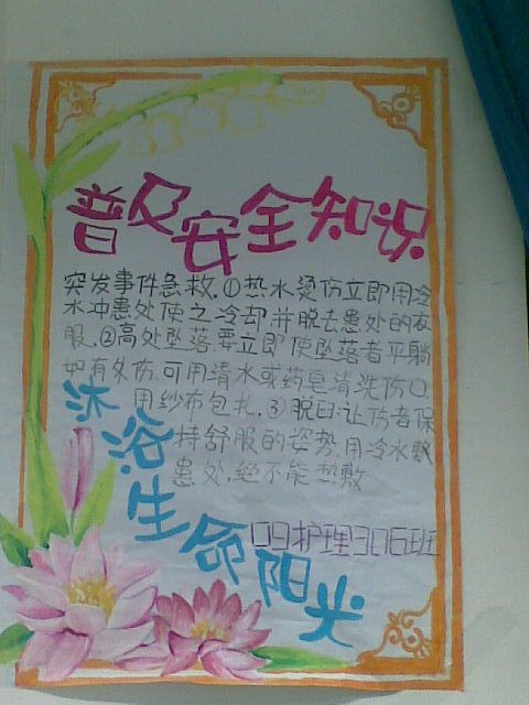 2011年3月,為進(jìn)一步強化廣大學(xué)生安全防范意識,預(yù)防和減少各類安全事故的發(fā)生,努力創(chuàng)建安全、文明、健康、和諧的校園氛圍,促進(jìn)同學(xué)們?nèi)娼】蛋l(fā)展。在護(hù)理系團(tuán)總支學(xué)生會的組織和帶領(lǐng)下,各團(tuán)支部都積極開展了以 “大學(xué)生安全教育”為主題的系列活動。