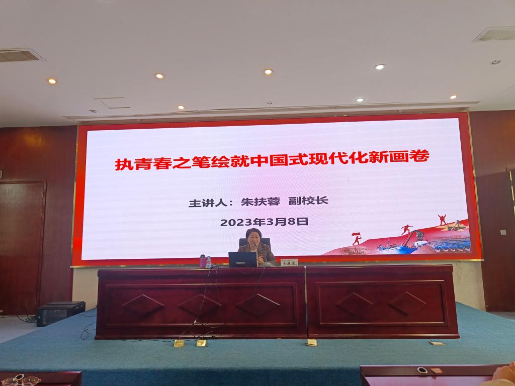 朱扶蓉教授圍繞“賡續(xù)初心、學(xué)深悟透、奮楫篤行”三個(gè)方面向大家闡釋接續(xù)奮斗實(shí)現(xiàn)中國(guó)式現(xiàn)代化的深遠(yuǎn)意義,科學(xué)把握中國(guó)式現(xiàn)代化的重要特征,激勵(lì)廣大學(xué)子以青春之力為中國(guó)式現(xiàn)代化著筆增色。
