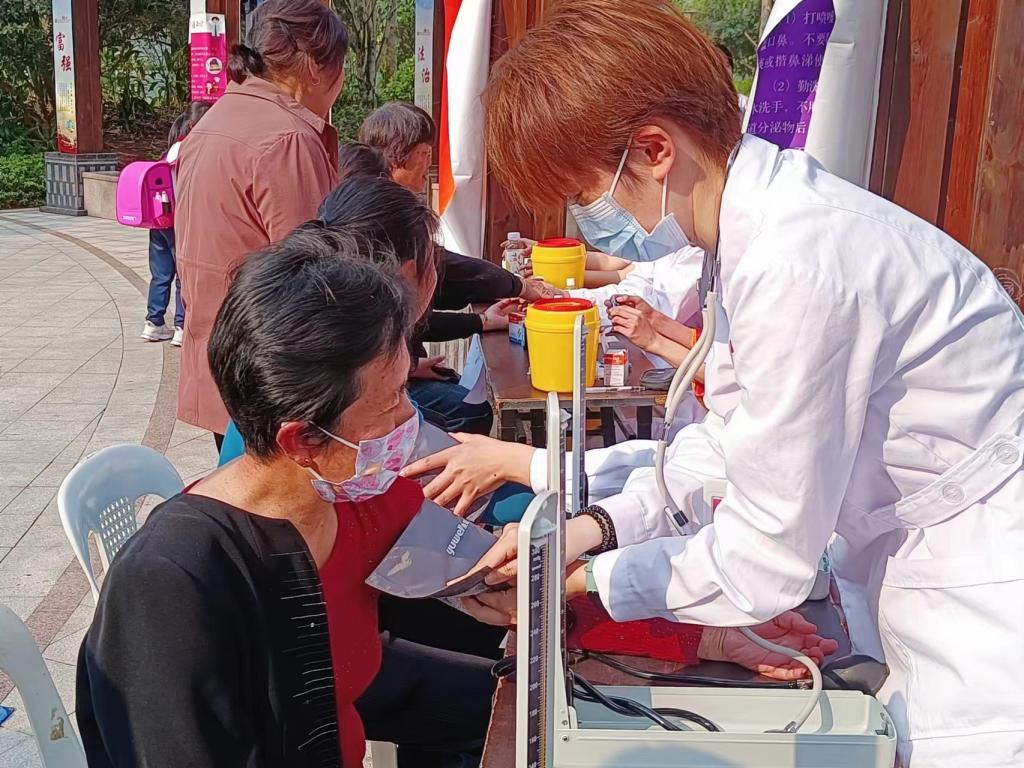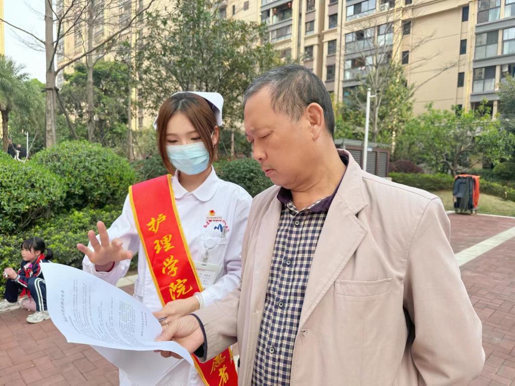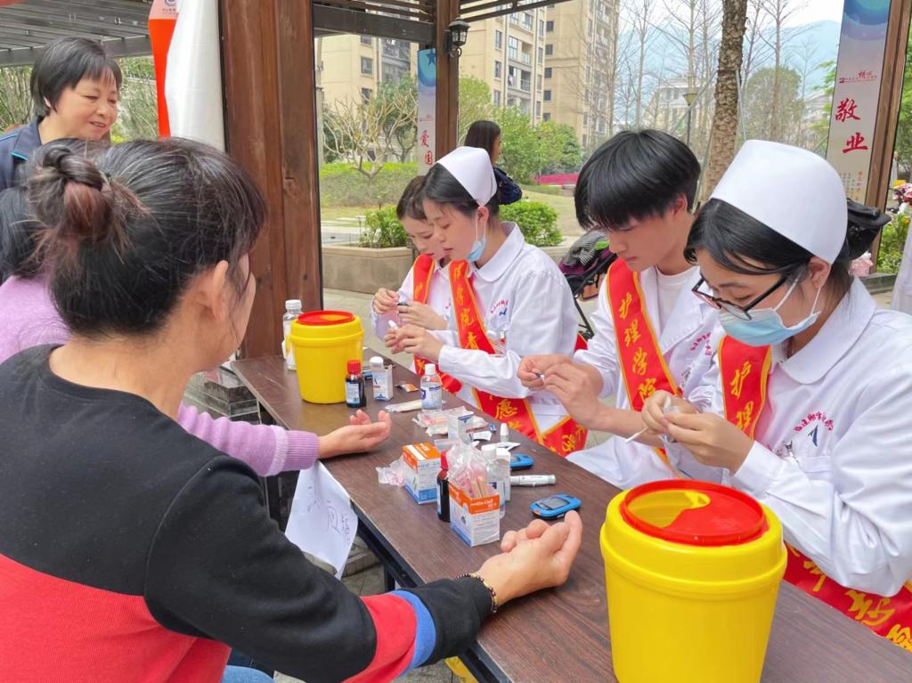 公益義診,守護(hù)健康。3月21日下午,護(hù)理學(xué)院攜手中鐵城居委會(huì)走進(jìn)中鐵城社區(qū)舉行“學(xué)雷鋒,行義診”志愿服務(wù)活動(dòng)?;顒?dòng)現(xiàn)場(chǎng),團(tuán)學(xué)干部免費(fèi)為居民測(cè)血糖、量血壓,同時(shí),還進(jìn)行了心肺復(fù)蘇、海姆立克急救法等急救知識(shí)的科普以及操作。同學(xué)們與居民親切交談,給居民們進(jìn)行健康宣教,耐心解答患者問(wèn)題。讓居民們了解更多健康知識(shí),提高居民自我保健意識(shí),增強(qiáng)了居民對(duì)一些常見病、多發(fā)病的認(rèn)識(shí)。