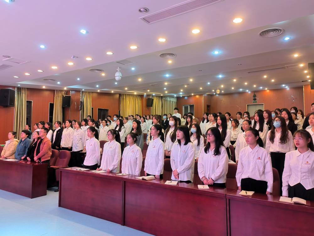 為學(xué)習(xí)宣傳貫徹習(xí)近平新時(shí)代中國(guó)特色社會(huì)主義思想和黨的二十大精神,深入落實(shí)新時(shí)代黨的建設(shè)的總要求和新時(shí)代黨的組織路線,切實(shí)做好入黨積極分子的培養(yǎng)教育工作,充實(shí)黨員隊(duì)伍后備力量,提升黨員發(fā)展質(zhì)量,嚴(yán)把發(fā)展黨員“入口關(guān)”,4月6日晚,護(hù)理學(xué)院黨總支分黨校第三期培訓(xùn)班開(kāi)班典禮暨黨課第一講在實(shí)訓(xùn)樓報(bào)告廳順利舉行。護(hù)理學(xué)院黨總支副書記林來(lái)元、學(xué)生黨支部書記、輔導(dǎo)員及護(hù)理學(xué)院22級(jí)全體入黨積極分子出席開(kāi)班典禮,開(kāi)班典禮由黨總支專職組員許慧瓊主持。