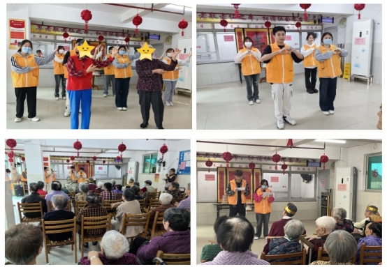 此外,同學(xué)們還積極參與了老年人生日會(huì)的組織和策劃。一起進(jìn)行場(chǎng)地布置,并為老年人精心表演節(jié)目,送上祝福。