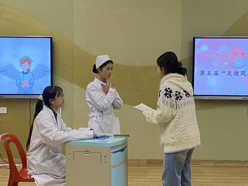 在繁忙的醫(yī)療環(huán)境中,護士與患者之間的溝通往往顯得尤為關鍵。一句溫暖的話語,一個真誠的眼神,都可能成為患者康復路上的重要支撐。它讓我們看到,護理溝通不僅僅是傳遞信息,更是傳遞愛與希望的力量。天使學堂功能型團支部12月12日在護理學院102教室舉辦第五屆“天使風采”禮儀大賽——“傾聽心跳,傳遞溫暖”。本次大賽邀請護理學院第一支部黨員教師擔任評委。