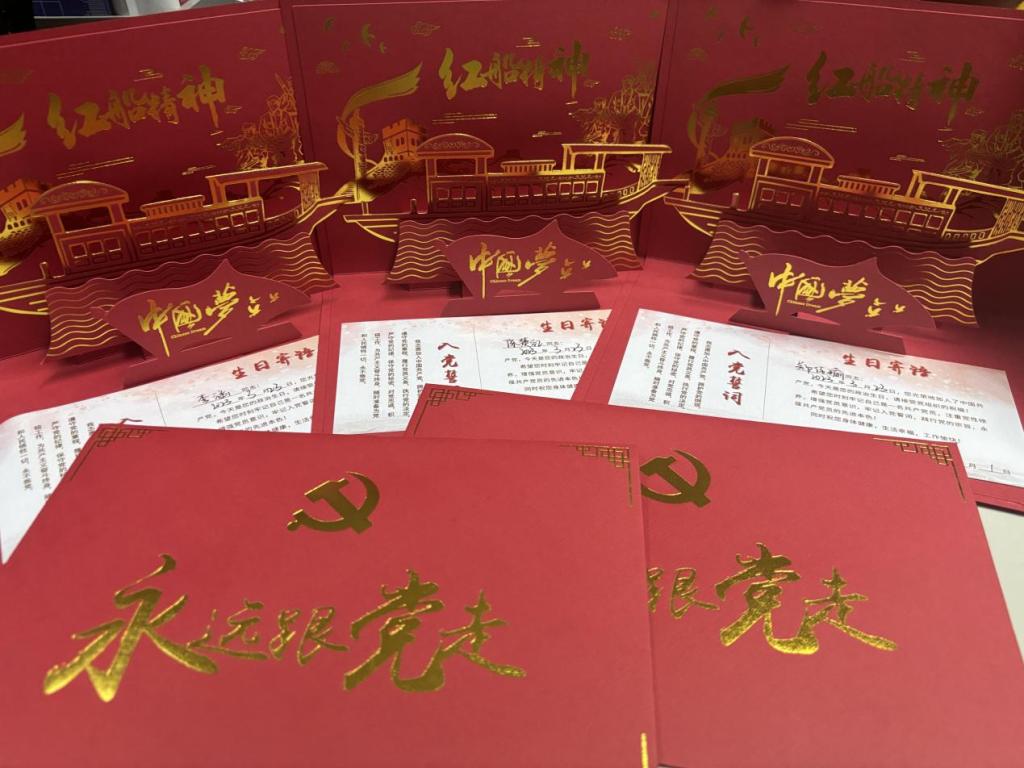 “政治生日”不僅是入黨的紀(jì)念日,更是每一位共產(chǎn)黨員的信仰名片。黨支部為畢業(yè)生黨員開展了一場集體“政治生日”,向畢業(yè)生黨員送上政治生日賀卡,每張賀卡上都寫著黨員的姓名、入黨時間、入黨誓詞,意在提醒黨員們時刻牢記黨員身份,不忘黨的宗旨,銘記黨的使命,在崗位中不畏困難,發(fā)揮黨員先鋒模范帶頭作用。