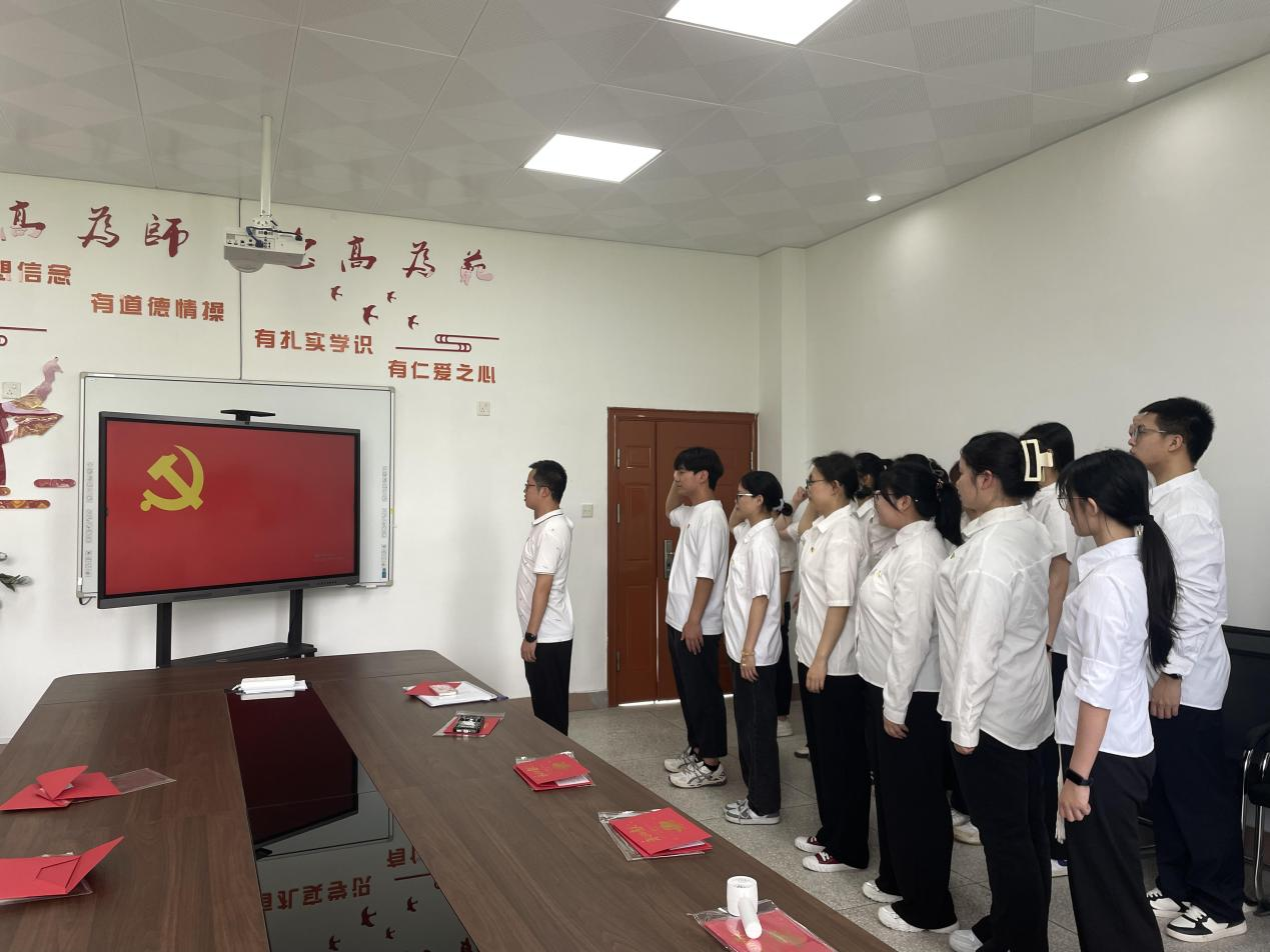 入黨誓詞,是黨員對黨和人民作出的莊嚴(yán)承諾。習(xí)近平總書記指出,入黨誓詞字?jǐn)?shù)不多,記住并不難,難的是終身堅(jiān)守。每個黨員要牢記入黨誓詞,經(jīng)常加以對照,堅(jiān)定不移,終生不渝?!拔抑驹讣尤胫袊伯a(chǎn)黨,擁護(hù)黨的綱領(lǐng),遵守黨的章程,履行黨員義務(wù),執(zhí)行黨的決定,嚴(yán)守黨的紀(jì)律……”全體黨員在領(lǐng)誓人的帶領(lǐng)下舉起右臂共同宣誓,重溫入黨誓詞,再一次接受了入黨誓詞的洗禮,堅(jiān)定了共產(chǎn)黨人的初心和使命。