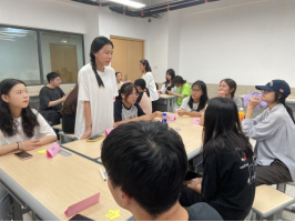 本次團(tuán)建以班級(jí)為主體各自開展,各班在團(tuán)建開始,通過(guò)報(bào)數(shù)的方式進(jìn)行隨機(jī)分組,分組后陳梅欽老師通過(guò)創(chuàng)新設(shè)計(jì)三要素空間、流程、人,啟用Highlight點(diǎn)亮來(lái)激活狀態(tài),親和小組。點(diǎn)亮姓名+個(gè)人優(yōu)點(diǎn)+學(xué)習(xí)期待,空間采用圓桌論壇,使每位學(xué)生都能近距離地與其他同學(xué)交流,有助于促進(jìn)思想的碰撞和靈感的激發(fā)。用(3分鐘個(gè)人)思考+(1分鐘組內(nèi))分享+(1名組長(zhǎng))推選+(2分鐘)總結(jié)一整套流程,通過(guò)狀態(tài)影響他人,把一個(gè)不融入的人,通過(guò)空間,流程,變成狀態(tài)滿滿的人。