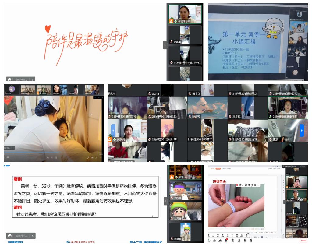 “停課不停教、停課不停學(xué)”,自學(xué)校啟動(dòng)線上教學(xué)以來(lái),護(hù)理學(xué)院積極組織教師發(fā)揮線上網(wǎng)絡(luò)課程平臺(tái)的優(yōu)勢(shì),不斷創(chuàng)新教學(xué)的形式和手段,積極探索“有效教學(xué)”+“精準(zhǔn)指導(dǎo)”線上實(shí)訓(xùn)教學(xué)改革,讓同學(xué)們?cè)诩橙≈R(shí)的同時(shí),還可以感受到老師們的親切問(wèn)候和濃濃牽掛。