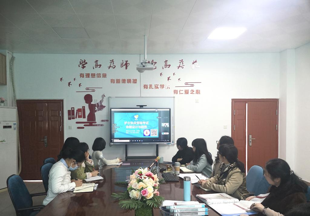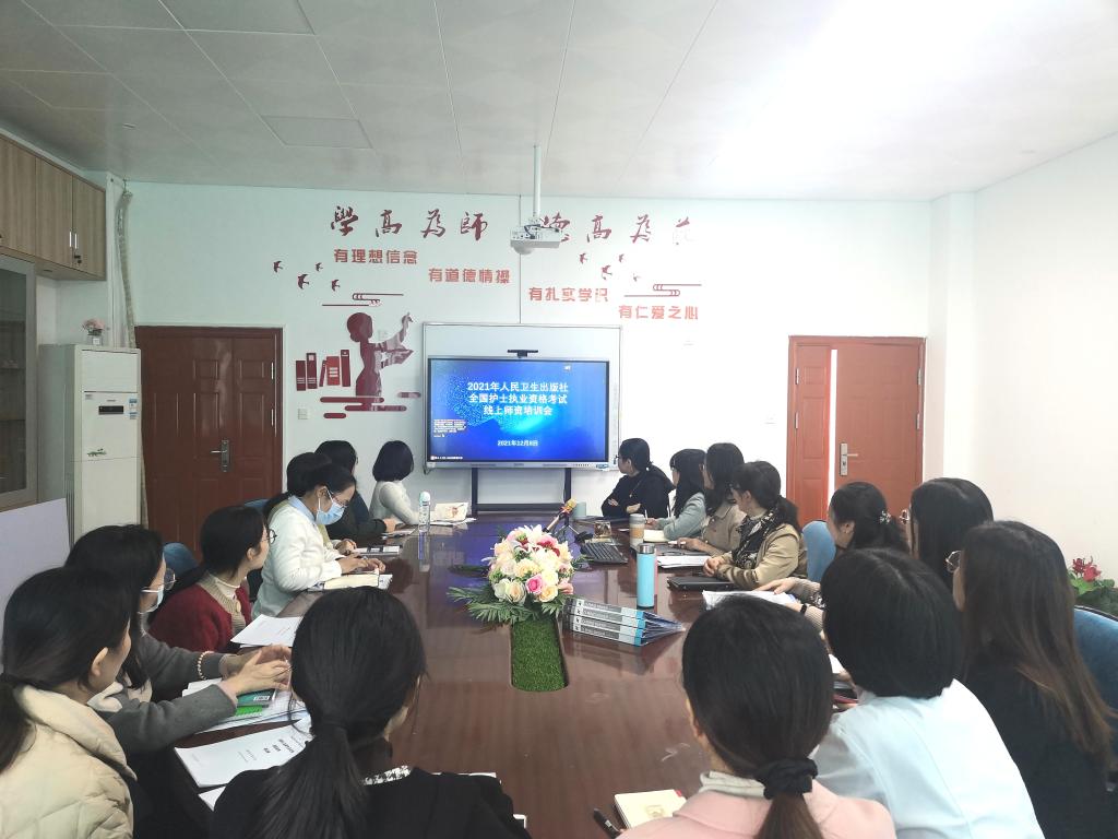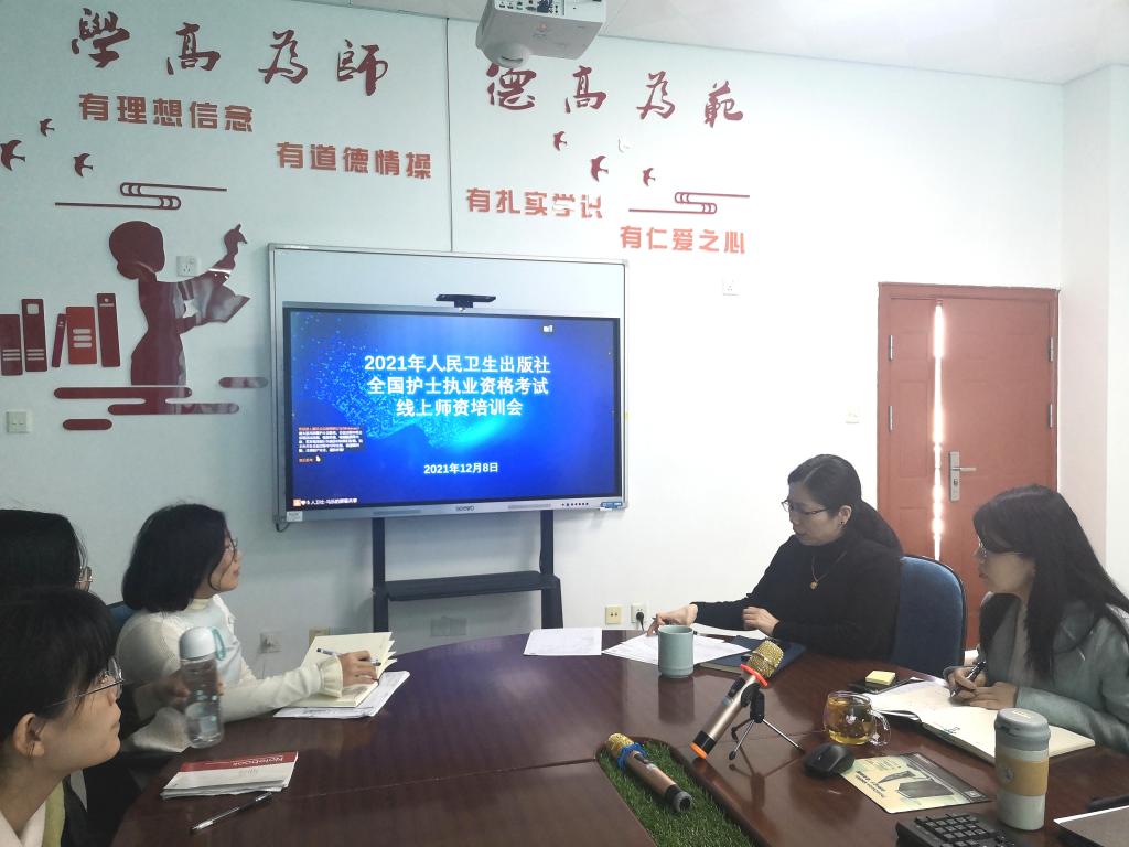為進一步提高護理學(xué)院學(xué)生護士執(zhí)業(yè)資格考試通過率,同時提升護考輔導(dǎo)教師的培訓(xùn)水平和教學(xué)能力,12月8日,人民衛(wèi)生出版社舉辦2021年全國護士職業(yè)資格考試線上師資培訓(xùn)會,護理學(xué)院教師在會議室參加了本次線上培訓(xùn)會。