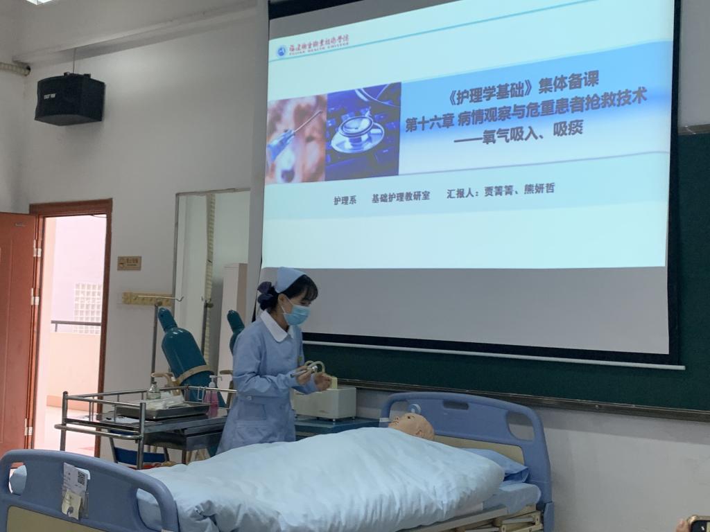 為了進(jìn)一步提高教師的備課效果和教學(xué)水平,提高基礎(chǔ)護(hù)理教學(xué)質(zhì)量,發(fā)揮黨員先鋒模范作用,2020年10月16日上午10點(diǎn),護(hù)理系基礎(chǔ)護(hù)理教研室組織教研室全體教師暨護(hù)理系第一黨支部黨員教師在護(hù)理系206教室開展了《病情危重患者的搶救技術(shù)》中“吸痰法” 操作技術(shù)的集體備課活動。