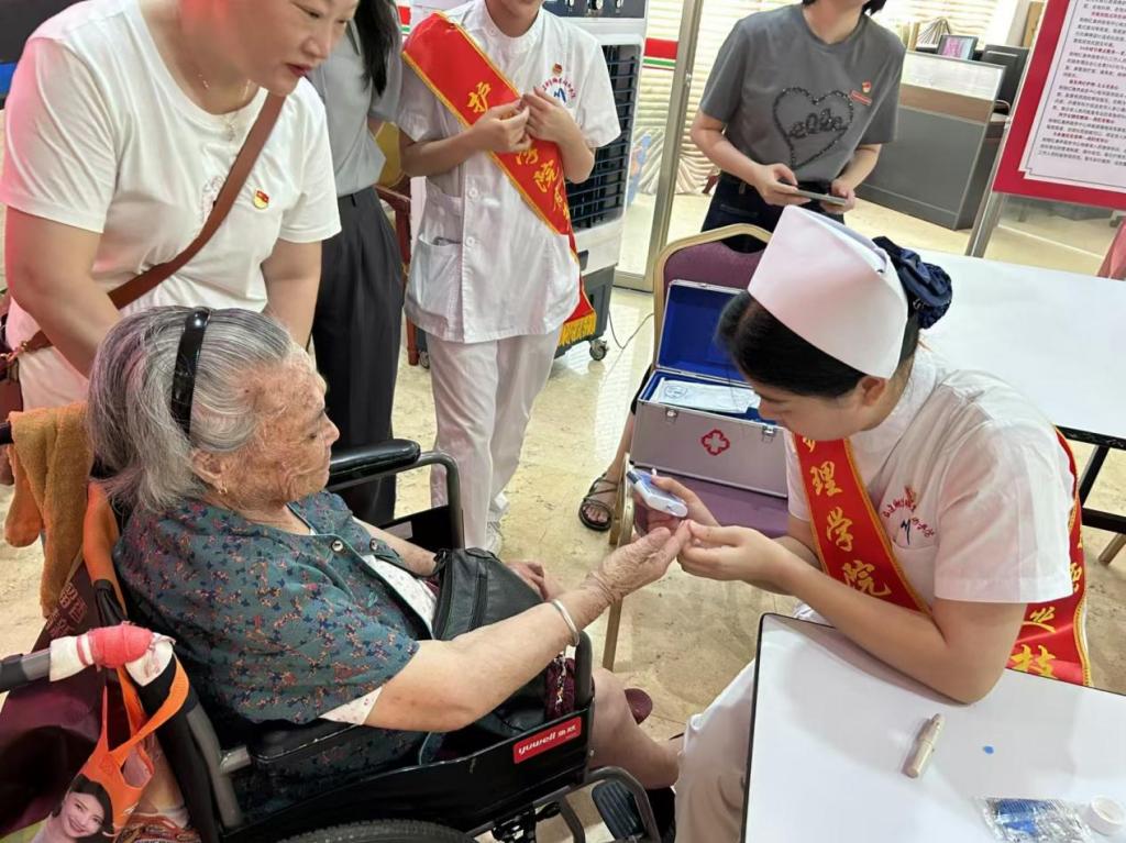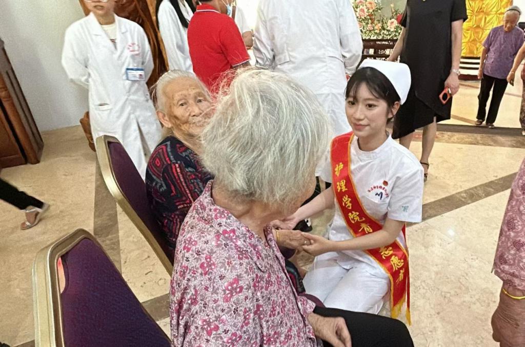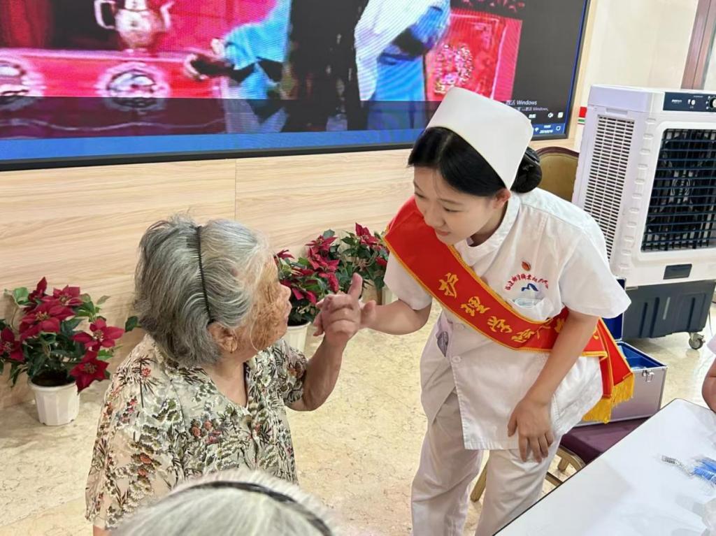 為全面貫徹落實習(xí)近平總書記的重要講話精神,推進(jìn)健康中國建設(shè),引導(dǎo)大學(xué)生更好地了解國情、感知社會、服務(wù)群眾,2024年8月10日上午,福建衛(wèi)生職業(yè)技術(shù)學(xué)院護(hù)理學(xué)院學(xué)生第二黨支部副書記林婕老師帶領(lǐng)護(hù)理學(xué)院“夢飛天使”志愿服務(wù)隊的隊員們與福建醫(yī)科大學(xué)附屬第一醫(yī)院的志愿者們共同前往泉州市泉港區(qū)刺桐紅康養(yǎng)服務(wù)中心開展暖心義診活動。